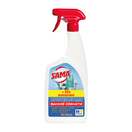 SAMA TM bathroom cleaner is designed for cleaning tiles, sinks, mixers and taps, bathtubs and shower cubicles, ceramic, plastic, acrylic and enamel surfaces.