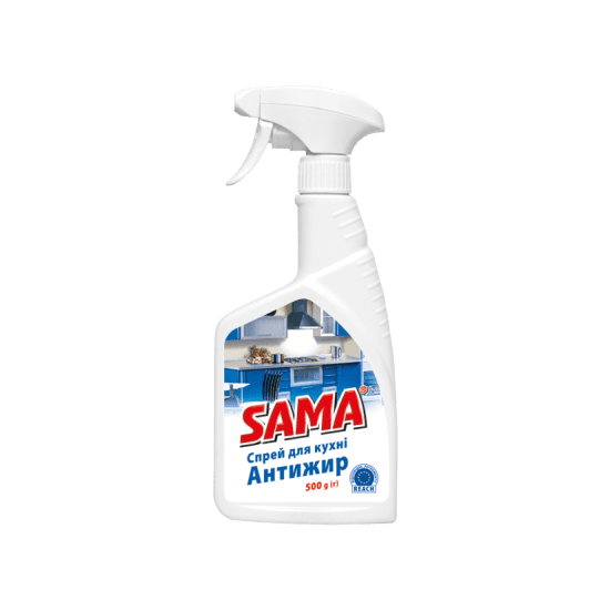 The latest cleaning product, SAMA TM Kitchen Spray, effectively and quickly removes any grease, soot and carbon deposits from enamel, ceramic, plastic and stainless steel surfaces, such as stoves, microwave ovens, ovens, cookware (pots, pans), floors, and sinks. It dissolves old stains perfectly. It kills germs and removes unpleasant odours.