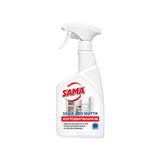 SAMA TM refrigerator cleaner has excellent cleaning properties and easily copes with any dirt, as well as eliminating unpleasant odours. The product has many advantages: it does not require rinsing, leaves no traces, is easy to use, economical and ensures impeccable cleanliness of the refrigerator.