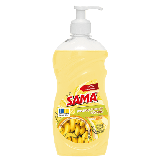 SAMA TM dishwashing detergent is an environmentally friendly dishwashing detergent made from 100% biodegradable raw materials. The product does not contain phosphates, chlorine, sulphates or other harmful substances. It is made using mild surfactants imported from Europe that are gentle on the skin of the hands and mucous membranes. The acid-alkaline balance is as close as possible to the acid-alkaline balance of the skin, which contributes to the safe use of the product. The specially developed formula ensures easy removal of heavy dirt of various types, not only in hot water, but also in cold water. It produces a thick lather that is easily rinsed off with running water. The consistency of the product allows for maximum economy and effectiveness. - BANANA - enjoy cleanliness and freshness with our unique dishwashing liquid with the delicate aroma of ripe banana. Its innovative formula effectively removes grease, food residues and dirt, leaving your dishes crystal clear and your hands soft and well-groomed. The delicate banana scent creates a feeling of tropical freshness. Create comfort in your kitchen with ease and convenience by adding a touch of exoticism to your daily dishwashing routine!