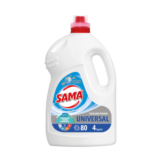 SAMA-Universal is designed to remove stains when washing cotton, linen and synthetic fabrics. It effectively and gently cleans even heavily soiled items without damaging the fabric structure, leaving clothes looking like new after repeated washing.