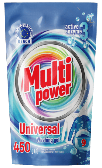 Гель універсальний для прання "MULTI POWER" спеціально створений для видалення забруднень на виробах з тканин. Засіб чудово відпирає, не залишає слідів на одязі, доглядає за тканиною і захищає колір. Дозволяє речам виглядати новими після багаторазового прання. Може використовуватися при ручному та машинному пранні: