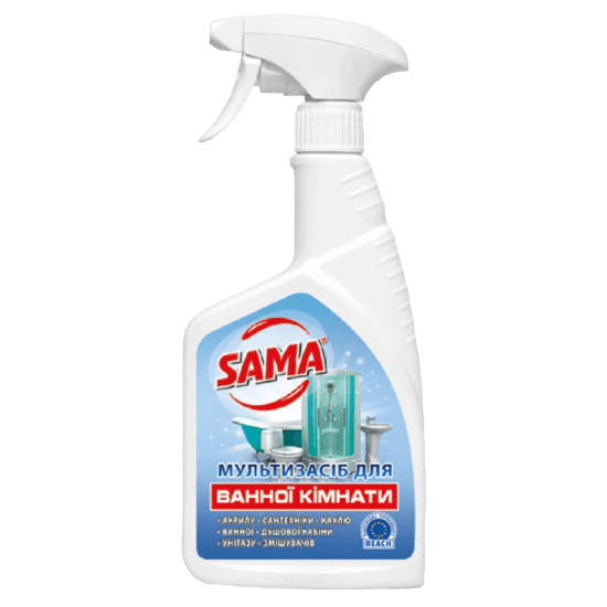 Мультизасіб для ванної кімнати ТМ "SAMA®" призначений для очищення плитки, кахлю, раковин, змішувачів і кранів, ванн і душових кабін, керамічних, пластикових, акрилових та емальованих поверхонь.